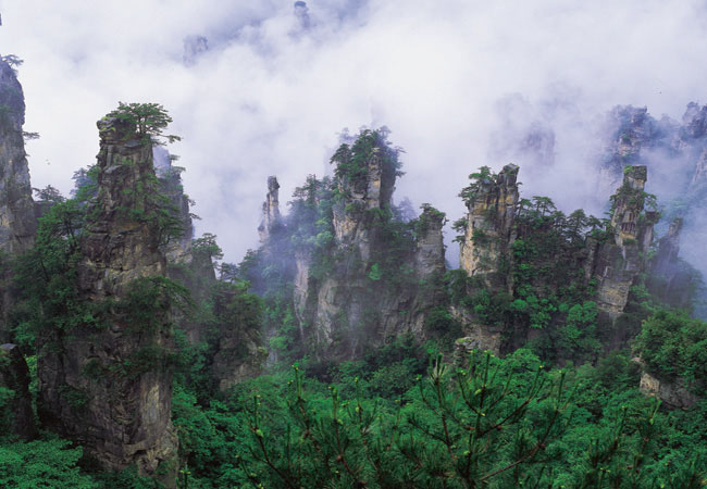 第二天 早餐后百龙电梯(72元/人自理)上行游览风光原始自然的袁家界景区:探寻阿凡达中的群山漂浮、星罗棋布的玄幻莫测世界---哈利路亚山 即袁家界“南天一柱”(又名乾坤柱),云雾飘绕、峰峦叠嶂,继往气势磅礴的迷魂台、天下第一桥等空中绝景。乘环保BUS至峰林之王天子山风景区,一览在阿凡达影片中出现的的西海峰林、御笔峰、仙女献花、武士驯马等千座山峰兀立云雾,波澜壮阔之神秘意境,三姊妹峰、采药老人等群峰层列,犹如梦幻仙境,令人留恋忘返。步行2小时下山(可乘天子山索道下山,67元/人)到达十里画廊风景区:采药老人、三姐妹峰、黄昏恋、金鸡报晓、夫妻抱子、天狗望月等景点(可乘观光小火车游览全程,52元/人)。 住张家界 | |||