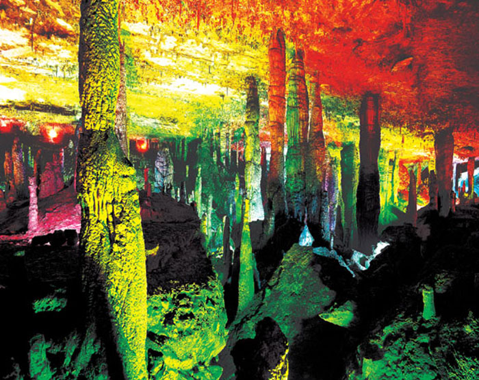 九天洞属喀斯特地貌的特大溶洞,构造复杂,发育于新华夏一极构造三隆起南段,属地层性复二迭系。目前已经探明可供游览的面积有250公顷,号称“亚洲第一大洞”。常年温度20-22摄氏底。