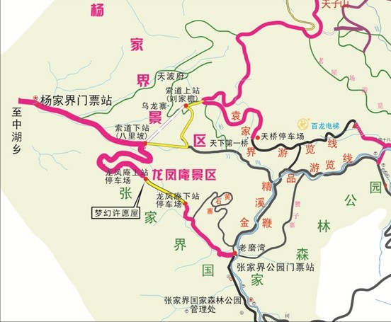 ②武陵源门票站——百龙电梯下站:(乘车)18分钟