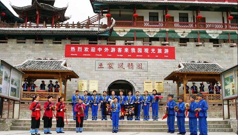 土家风情园酒店座落于张家界市南庄坪,是由主楼区、门楼区、山寨区三部分组成,具有浓郁的土家民族特色,拥有标准客房、豪华套房、山寨土家农舍等.余人的会议厅、露天泳池、博园、网吧、美容美发、桑拿按摩等多项服务设施。宾馆三面环山、环境优美、通讯及交通便利,是您观光旅游、集闲疗养、商务洽谈、商务会议、教育培训的最佳选择,酒店拥有标准客房、豪华套房、山寨土家农舍等余套。 设施服务: 有可同时容纳百余人的会议厅、露天泳池、博园、网吧、美容美发、桑拿按摩等多项服务设施。 餐饮设施: 土家山寨吊脚楼式的客房雅致幽静,别有情调。餐厅主要由宴会厅和土家走马转角楼式的大小包厢构成,全为木质结构,风格独特,经营瓦钵系列、竹筒系列等土家菜肴,腊干酸野,土色土香。可同时容纳三百人就餐。 会议设施: 会议室提供音响、话筒、茶水、纸、笔等,多功能会议室有三个。 | |||