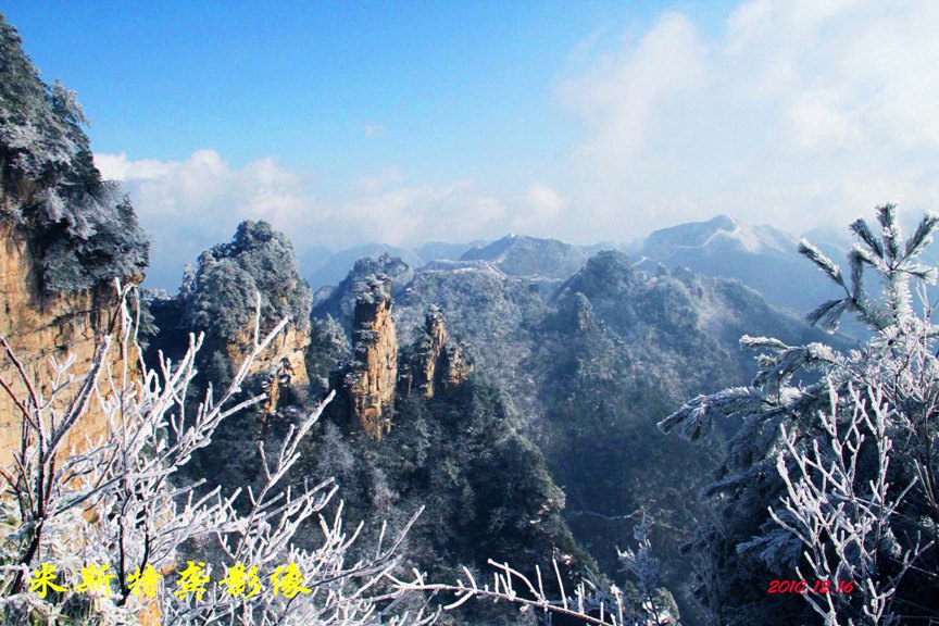 2010年湖南的第一场雪首先降临美丽的张家界,16日上午笔者与几位摄友上得天子山,在索道上站平台上,无意中发现对面群山上居然显现出迂回蜿蜒的长城,同时发现的还有一群来在香港和台湾的游客,大家惊喜不已,赶忙留影纪念。原来张家界的长城也是如此壮观巍峨啊!空口无凭,上图是王道!