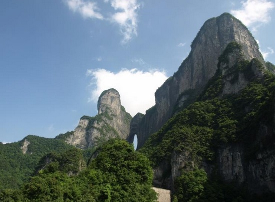 这些就是我晓得滴天门山传说,后来白胡子老东西把传说刻在天门山的鬼谷洞,有不相信的爬到鬼谷洞克看,洞中岩壁上有打油诗为证:巍巍天门矗九天,四四方方似门槛,神仙至此飞不过,噼里哗啦滚下凡。天门山上本无眼(an),只因山高挡神仙,大圣飞来一撬杆,从此天门一筒眼(an)。