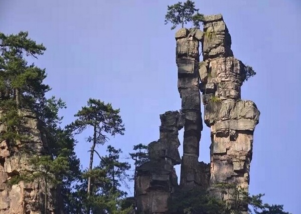 日星隐耀天终坼,沧海潜形地始裂。激情澎湃涌腹内热情,豪言壮语呈面上刚毅。水为之退,山因此立。熔岩炼成满腹经纶,海潮刻就一脸沧桑。于是乎,心潮不再动荡。狂躁瞬间铸就永恒奇观,凌空的腾跃凝成万古佳话。燃烧的激情潮退,挺拔的身板山立。亿年不长,转瞬非短。伟哉大自然,奇也张家界。