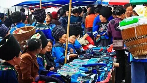 赶集之日,宽阔的街道变得拥挤,苗民们身着苗服,双肩挎着苗家特色背篓,熙熙攘攘的会集于此。