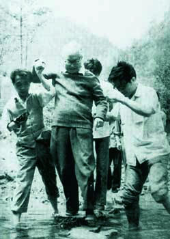 我国著名文学家沈从文(中)于一九八二年五月二十九日来张家界林场观光。