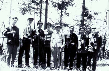 香港著名摄影家、原中国摄影家协会副主席陈复礼(右四)于一九八一年四月二十二日来张家界林场摄影。右一为陈勃,曾任中国摄影家协会副主席。