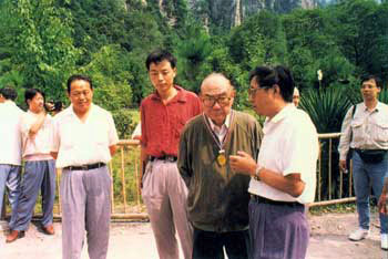 一九九四年八月二十二日,全国政协副主席安子介(前左)入园视察。