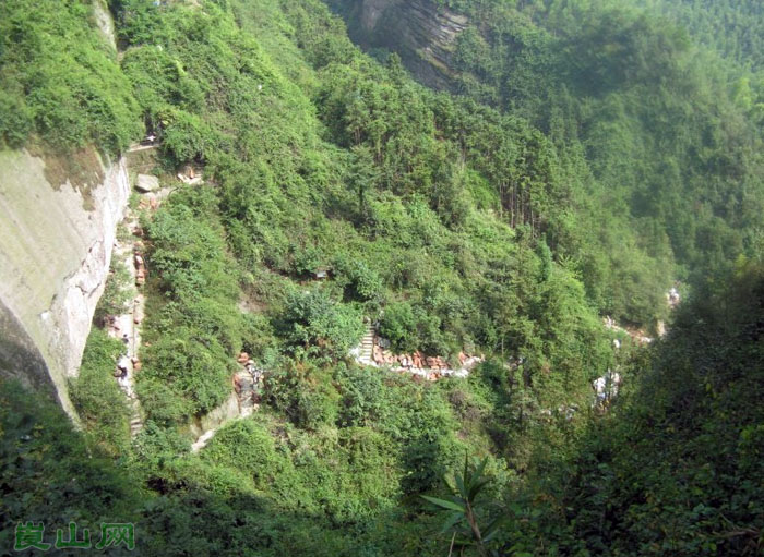走进那雕梁画栋的城楼式大门拾级而上来到银珠亭,映入眼帘的是崖壁银珠飞泻;疑是银河落九天之气势。官帽亭前思古人,别有滋味在心头。过银珠岩、攀天梯来到楚天亭,穿过长达238.8米、宽0.5米、高120米的天下第一巷,只见巷道幽深、绝壁陡峭,午时阳光直射,巷壁熠熠升辉,堪称天下奇观。这里还有清代义军驻扎的遗址,太平天国起义军翼王石达开当年曾率兵屯于此地。走进环形石巷,围绕山峰循环的马蹄巷、遇仙巷、翠竹巷等让人留连忘返;攀登揽月梯,大有可上九天揽月之感叹!山谷纵横交错,胜若八卦迷阵的迷猴谷,相传当年百岁老猴在此迷途难返而得名。天潭位于牛鼻寨顶,是一个天然水库,水清见底,常年不竭,犹如仙境瑶池;来到七层楼藏天洞,站在“望江楼”、“楼外楼”观景望江、气象万千,尽收眼底。