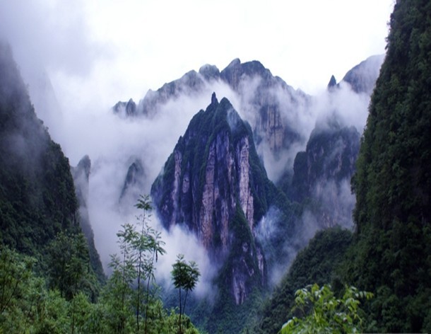 七星山介于天门、熊壁山、崇山三山之间,四座山均为四面刀載绝壁试绝壁,海拔也均在1500米以上,构成了中国版土中最为大气壮观的呈垂直角度的孤峰地貌群落。而七星山为其最高最大者。