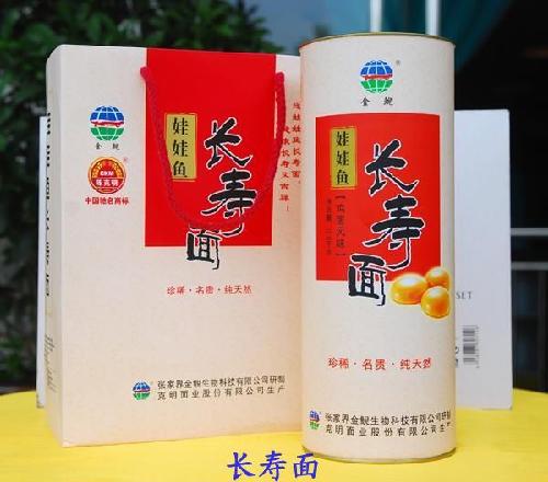 娃娃鱼作为中国特有的珍稀物种,它全身都是宝,据专家分析,每百克干物质含氨基酸成分91.92g,活性物质多达五十多种,并含有丰富的金属硫蛋白等特异性蛋白,能清除体内自由基,可提高免疫力抗衰老,在民间娃娃鱼又称为长寿鱼,古老、长寿就是它的代名词。面条自古以来就是长寿的象征和代名词。一直以来,人们在过生日的时候都会煮上一碗长寿面以寓意健康长寿。娃娃鱼长寿面,采用有机食品标准将娃娃鱼肉粉和面粉等精制而成,不仅有长寿的寓意而且还独家加入了娃娃鱼独特的长寿因子,不仅口感好,易于消化和吸收,而且是您可以更容易获得的长寿的秘方。娃娃鱼长寿面条还是张家界市政府指定的特有的旅游纪念品和礼品,送娃娃鱼长寿面就是送健康、送长寿!