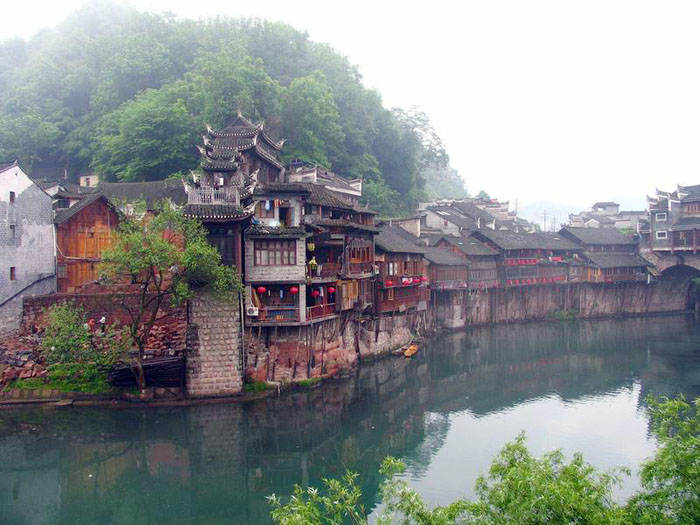 【第二天】 早餐后游览凤凰古城(门票已含):沈从文故居、熊稀龄故居、杨家祠堂、虹桥艺术楼、东门城楼、崇德堂、万寿宫、沱江泛舟、古城博物馆,欣赏沙湾吊脚楼,漫步石板小街,踏电影“湘西剿匪记”遗址,远眺沱江跳岩、北门老码头、万名塔,品尝当地特色菜“血粑鸭”;欣赏熊氏蜡染、苗家银饰等,回程张家界,(12:00及17:00)抵张家界市区,行程结束!