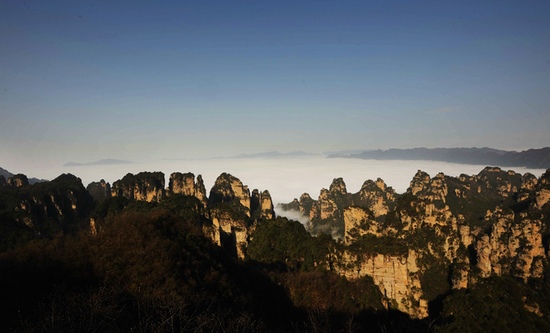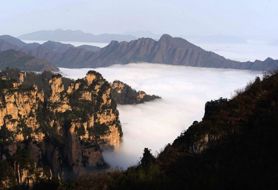 4月4日下午至5日上午,世界自然遗产武陵源风景名胜区出现罕见的云海奇观,让清明节到张家界旅游的上万名海内外游客陶醉其间、流连忘返。